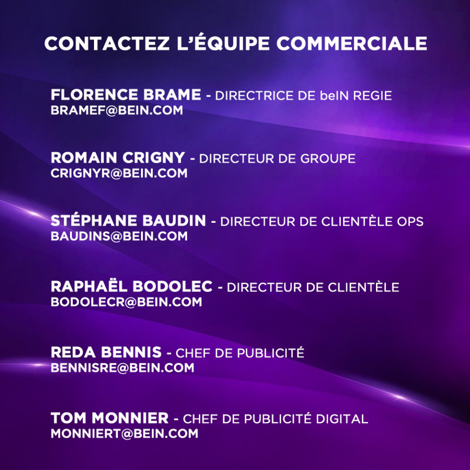beIN REGIE, régie publicitaire de beIN SPORTS France, a développé un savoir-faire reconnu dans la vente de solutions médias sur les 3 chaînes TV qu’elle commercialise et l’écosystème digital et social attenant. beIN REGIE s’est également développée dans la conception et production d’opérations spéciales de brand content pour répondre au mieux aux attentes et besoins des annonceurs.